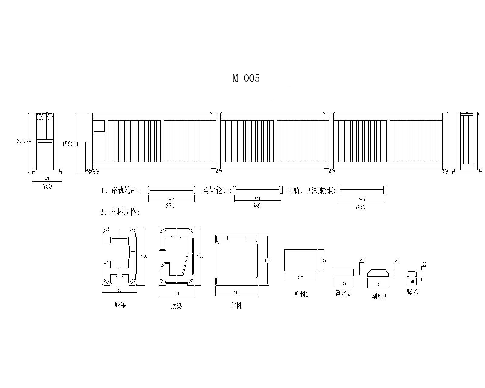 2、型材規格:底梁:150mmx90mmx3.0mm;頂梁:150mmx90mmx3.0mm